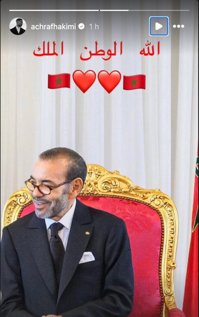 من جانبه، عبر أشرف حكيمي، نجم باريس سان جيرمان الفرنسي، عن فخره بهذا القرار، حيث نشر عبر حسابه على إنستغرام صورة للملك محمد السادس مرفقةً بعبارة: “الله، الوطن، الملك”.