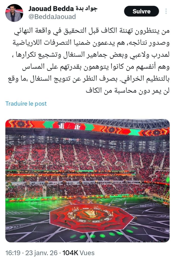 وفي مقابل هذا الانزلاق، جاء رد جواد بدة ليضع الأمور في نصابها، كاشفا أن المطالبة بتهنئة متسرعة قبل انتهاء التحقيقات لا تعني سوى تبرير التصرفات اللارياضية وتشجيع تكرارها، ومذكرا بأن التتويج، مهما كانت قيمته، لا يلغي مبدأ المحاسبة.